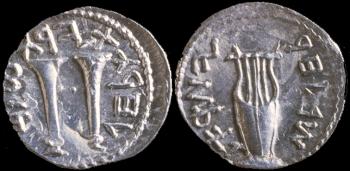 Thus, on these Bar Kochba coins, the side with the trumpets reads: "To the freedom of Jerusalem" while the reverse, with the lyre, reads "Year two to the freedom of Israel."